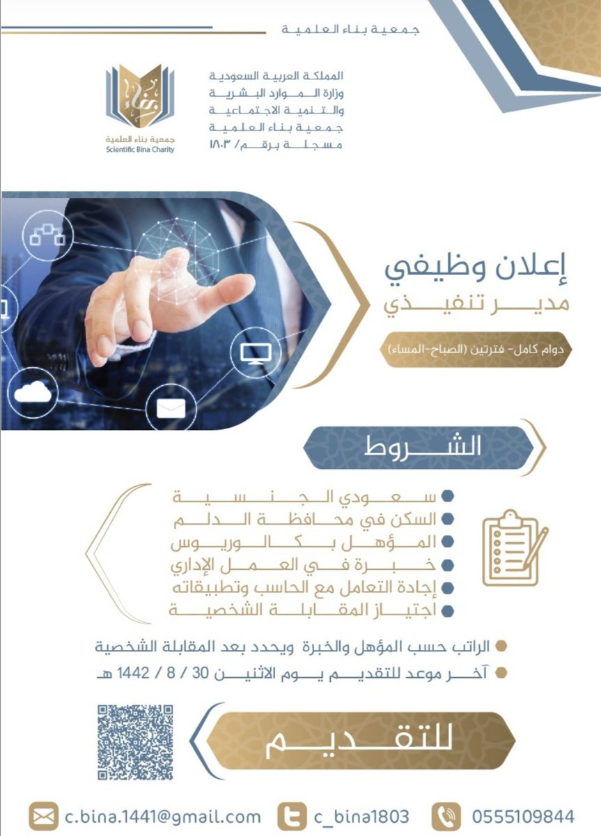 جمعية بناء العلمية بمحافظة الدلم توفر وظائف إدارية شاغرة لحملة الدبلوم فأعلى