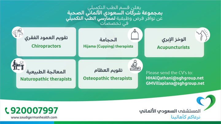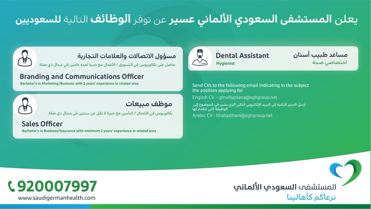 المستشفى السعودي الألماني عسير يوفر وظائف في التخصصات الإدارية والصحية
