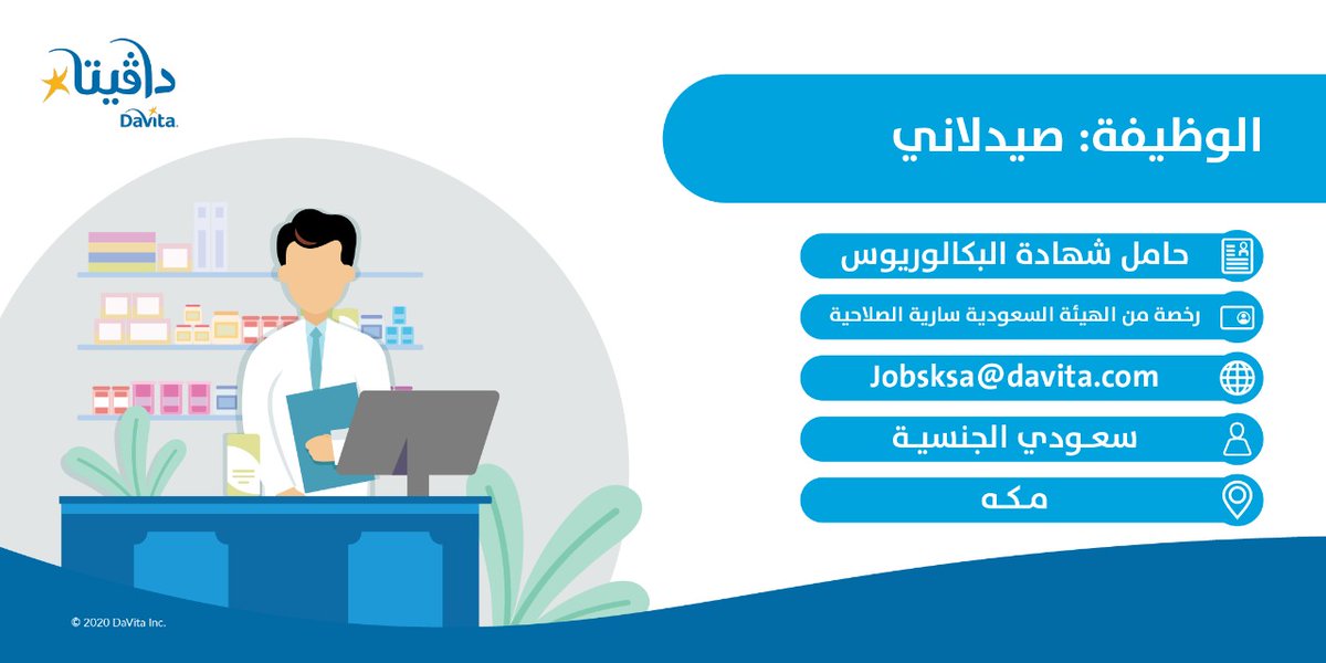 أعلنت شركة دافيتا السعودية (DaVita) توفر وظائف صحية شاغرة بمكة المكرمة وجدة، وذلك وفقاً لبقية التفاصيل الموضحة أدناه.