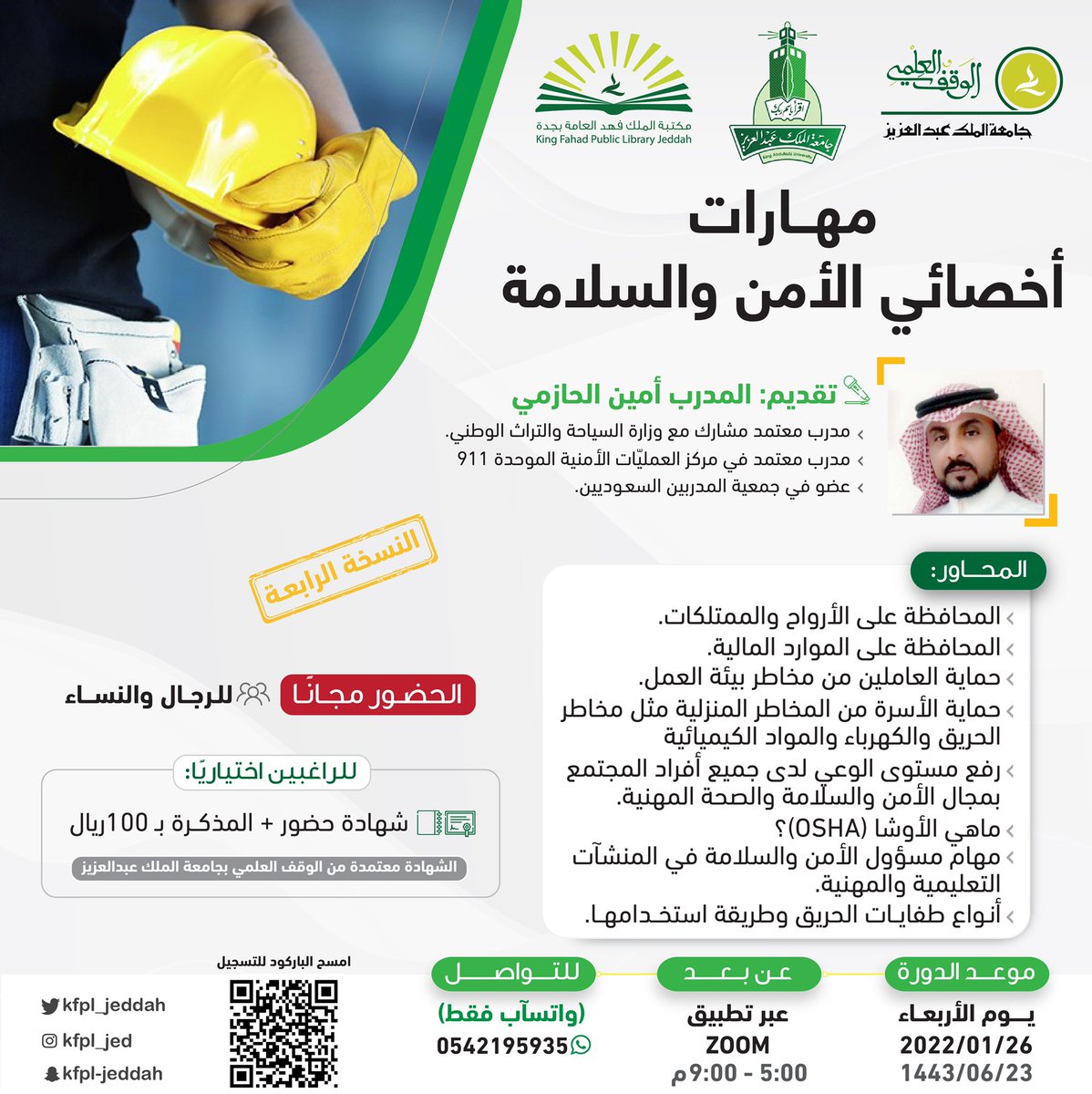 أعلنت مكتبة الملك فهد العامة بمحافظة جدة ضمن سلسلة تطوير المهارات إقامة دورات تدريبية (عن بُعد) بعدة مجالات تدريبية، وسوف يكون حضور الدورة (مجاني)، والشهادة (اختيارية برسوم)، وذلك وفقاً للتفاصيل الموضحة أدناه.