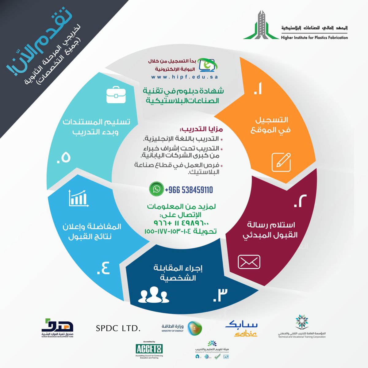 أعلن المعهد العالي للصناعات البلاستيكية بمدينة الرياض فتح القبول لحملة الثانوية (جميع التخصصات) للفصل التدريبي الأول 2022م، علماً بأن التقديم يتم عبر البوابة الإلكترونية للمعهد، وذلك وفقاً للتفاصيل وطريقة التقديم الموضحة أدناه.
