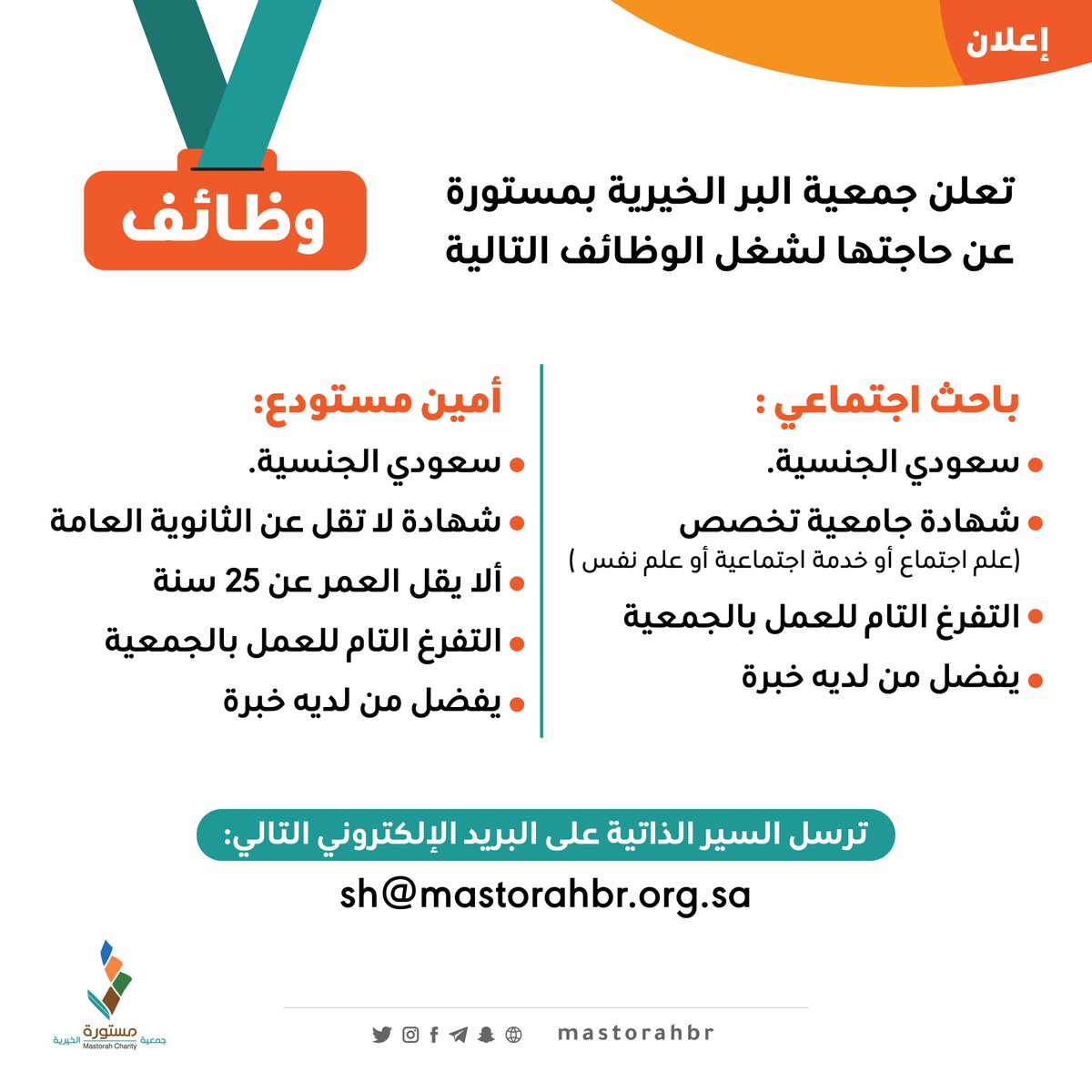 جمعية البر الخيرية بمستورة توفر وظائف شاغرة لحملة الثانوية فأعلى