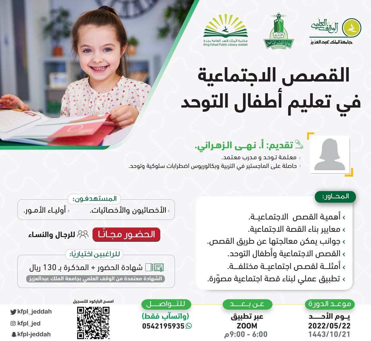 مكتبة الملك فهد العامة بجدة تعلن إقامة دورات تدريبية (عن بُعد) بعدة مجالات