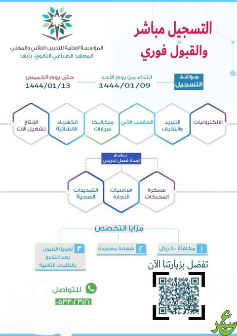 المعاهد الصناعية الثانوية تعلن فتح القبول والتسجيل المباشر في عدة مدن بالمملكة (دعم مادي يصل 300 ألف)
