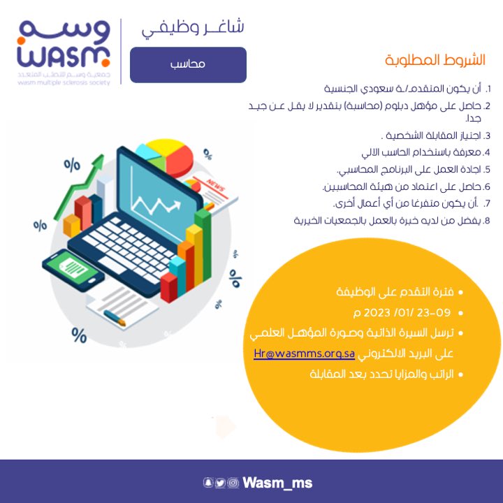 جمعية وسم للتصلب المتعدد تعلن وظائف إدارية لحملة الدبلوم فأعلى بجدة.