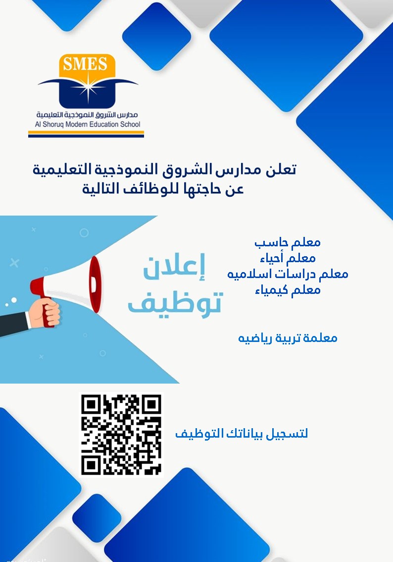 أعلنت مدارس الشروق النموذجية التعليمية بنجران توفر وظائف تعليمية بعدة تخصصات، واشترطت المدرسة أن يكون المتقدم أو المتقدمة سعودي الجنسية، وذلك وفقاً للتفاصيل وطريقة التقديم الموضحة أدناه.
