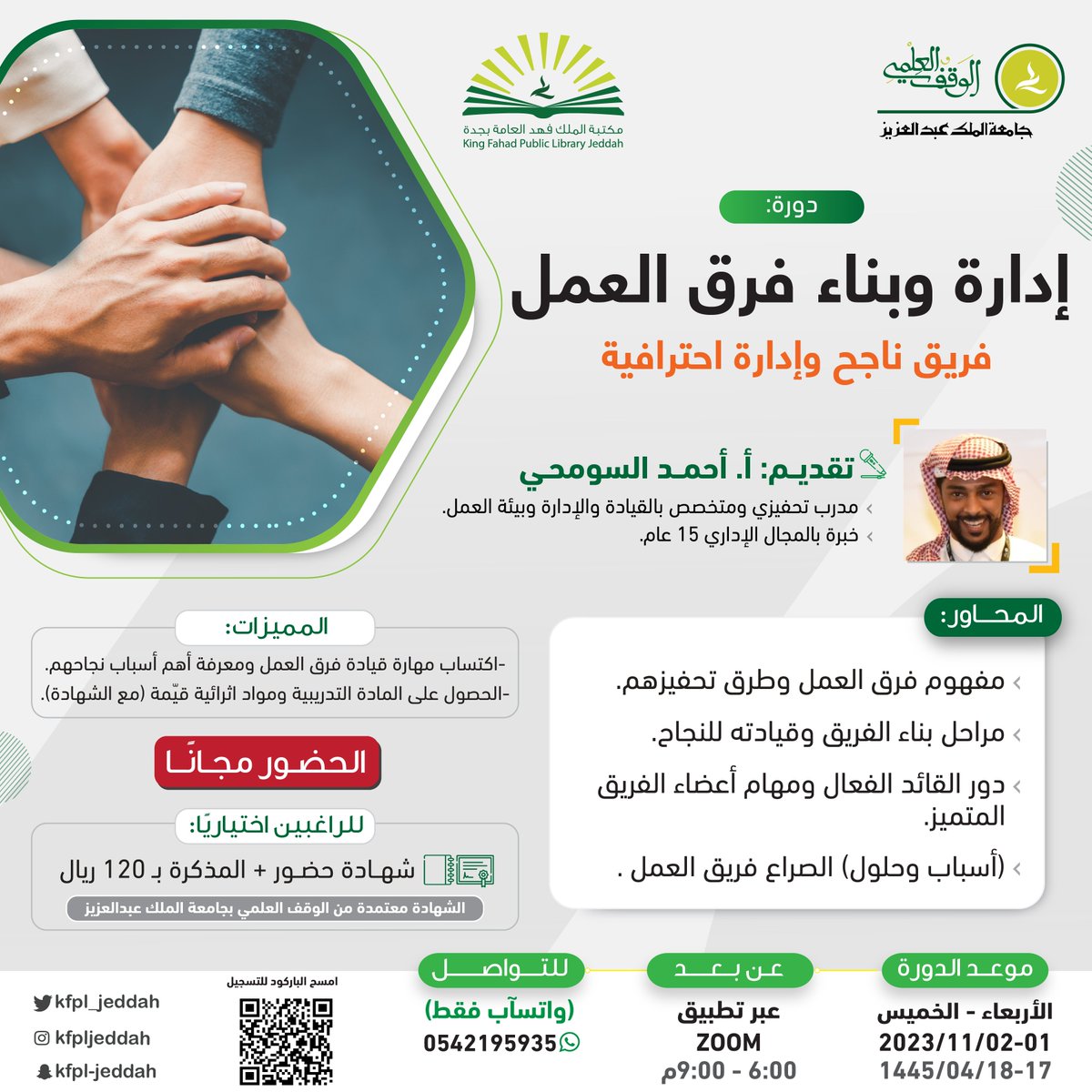 مكتبة الملك فهد العامة تعلن إقامة 9 دورات تدريبية (عن بُعد) في عدة مجالات.