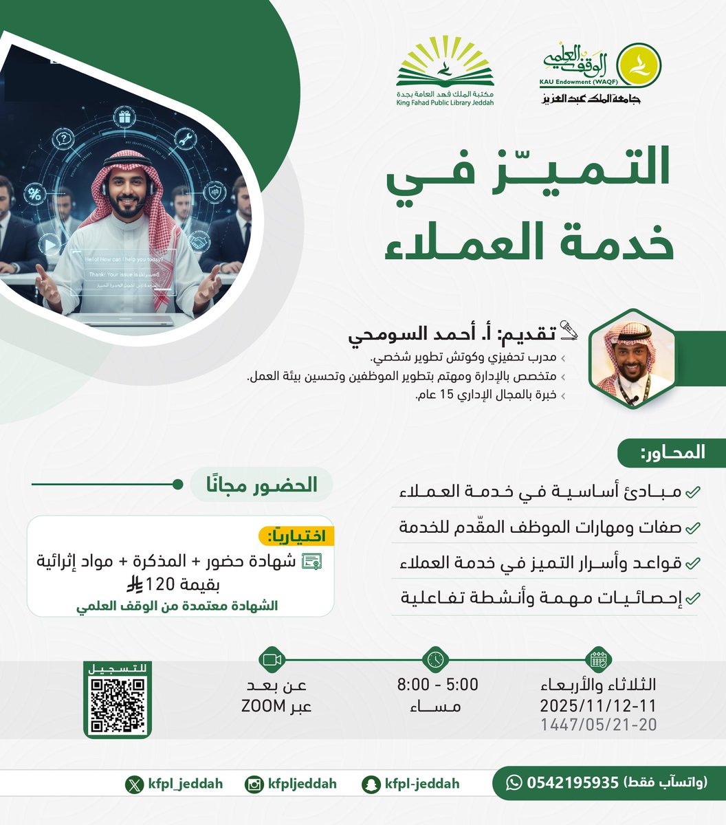 (🔴) دورات تدريبية (الحضور مجاناً) مقدمة من مكتبة الملك فهد العامة بجدة