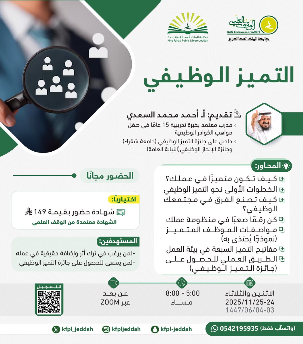 (🔴) دورات تدريبية (الحضور مجاناً) لدى مكتبة الملك فهد العامة بجدة