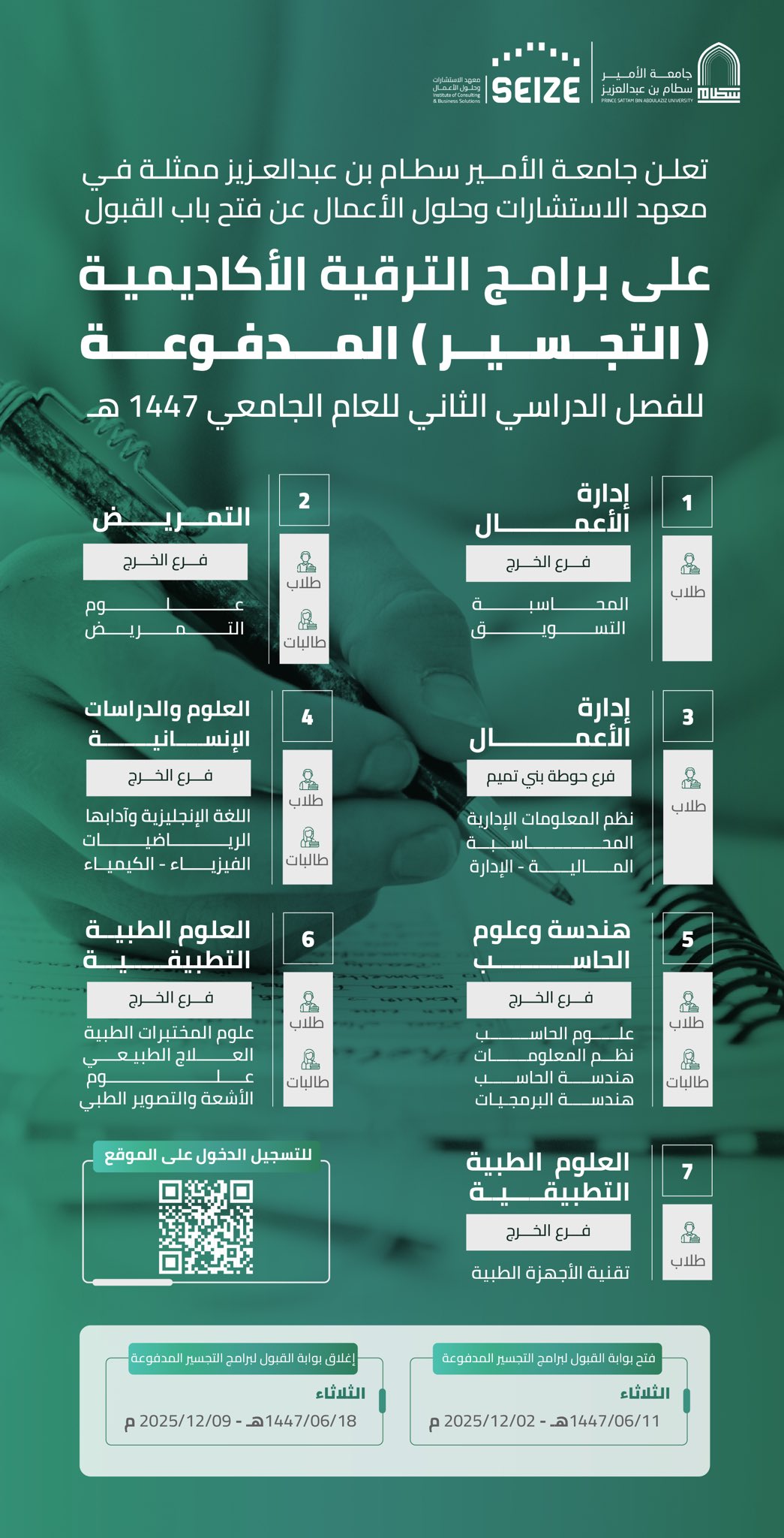 (🔴) جامعة الأمير سطام تعلن برامج التجسير الأكاديمية (المدفوعة) للفصل الثاني ١٤٤٧هـ