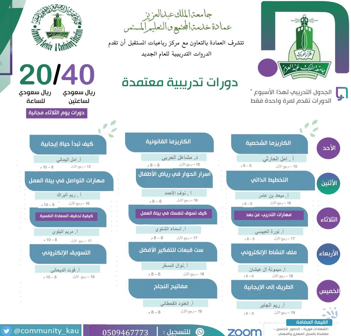 جامعة الملك عبدالعزيز تقدم دورات تدريبية مُعتمدة منها دورات (مجانية)