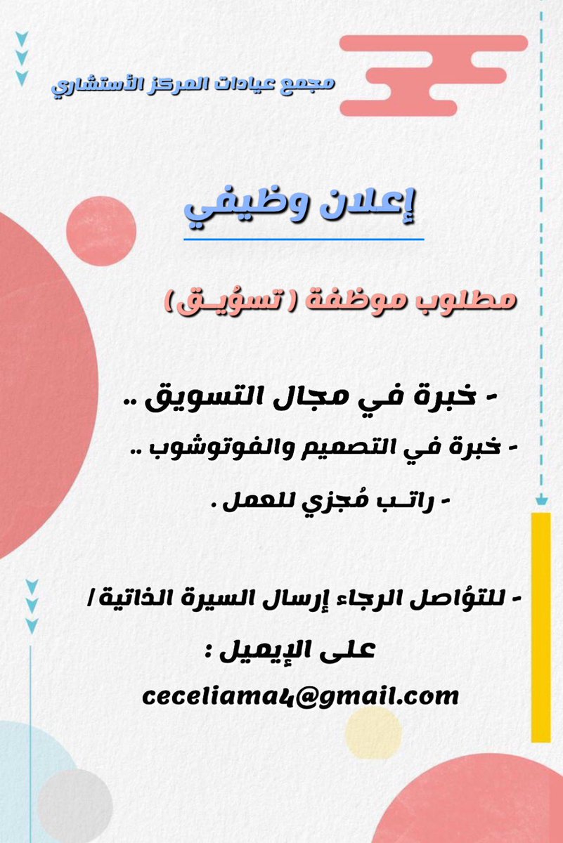 مجمع عيادات المركز الإستشاري يوفر وظيفة نسائية بمجال التسويق بالرياض